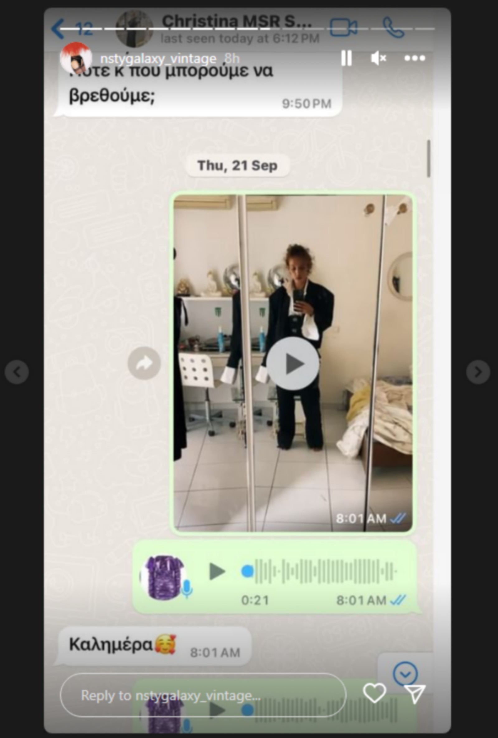 Στα επίμαχα screenshots, βλέπουμε την στυλίστρια να φοράει συγκεκριμένα outfits, με την παίκτρια να ζητάει να τα φορέσει, ενώ σε άλλο καρέ η Χριστίνα την ρωτάει πού και πότε μπορούν να βρεθούν.