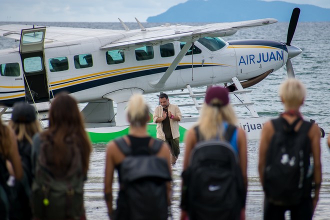 Οι ομάδες καταφθάνουν με υδροπλάνο στο νησί