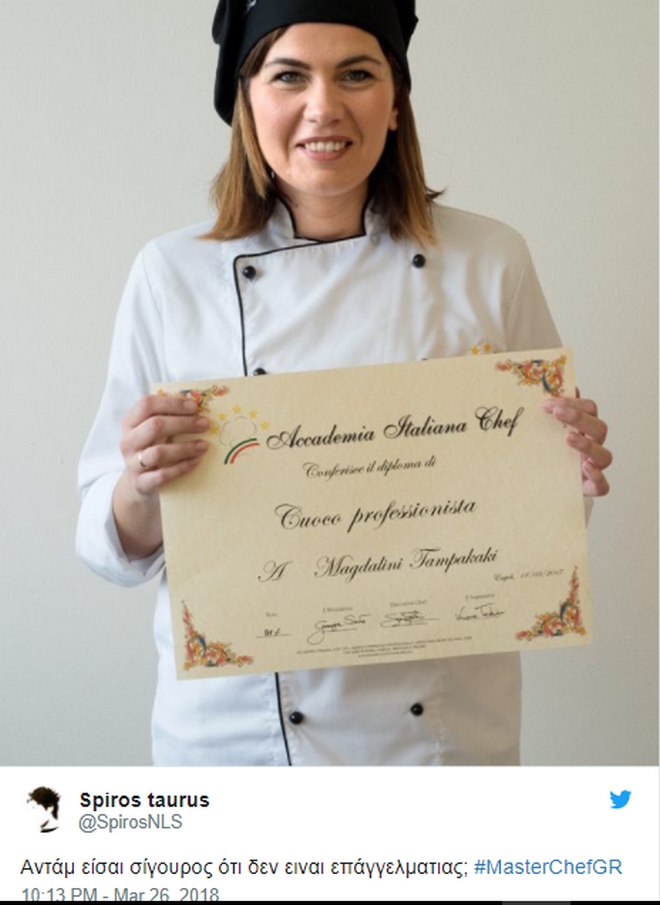 Μπορεί η Μάγκυ να κέρδισε τον ειδικό διαγωνισμό Silver Award του Master Chef, με τον μέντορα σεφ της να την επαινεί για τη νίκη της απέναντι σε επαγγελματίες, όμως γρήγορα στο twitter κυκλοφόρησαν δεκάδες αναρτήσεις που αμφισβητούσαν κάτι τέτοιο. Κυκλοφόρησαν στο twitter φωτογραφίες της, η μία με ένα πτυχίο μαγειρικής στο χέρι και η άλλη από τη συμμετοχή της στο Master Chef Ιταλίας.
