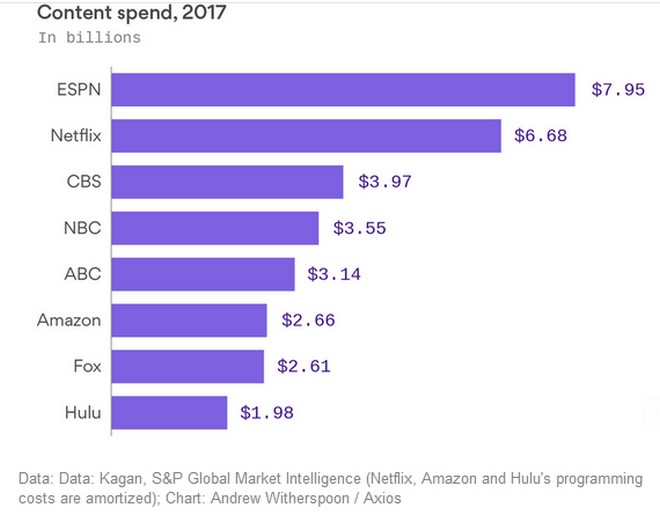 Το Netflix μάλιστα έρχεται δεύτερο, μετά το ESPN, στη λίστα των τηλεοπτικών πάροχων με τις μεγαλύτερες δαπάνες για την παραγωγή προγραμμάτων τους.
