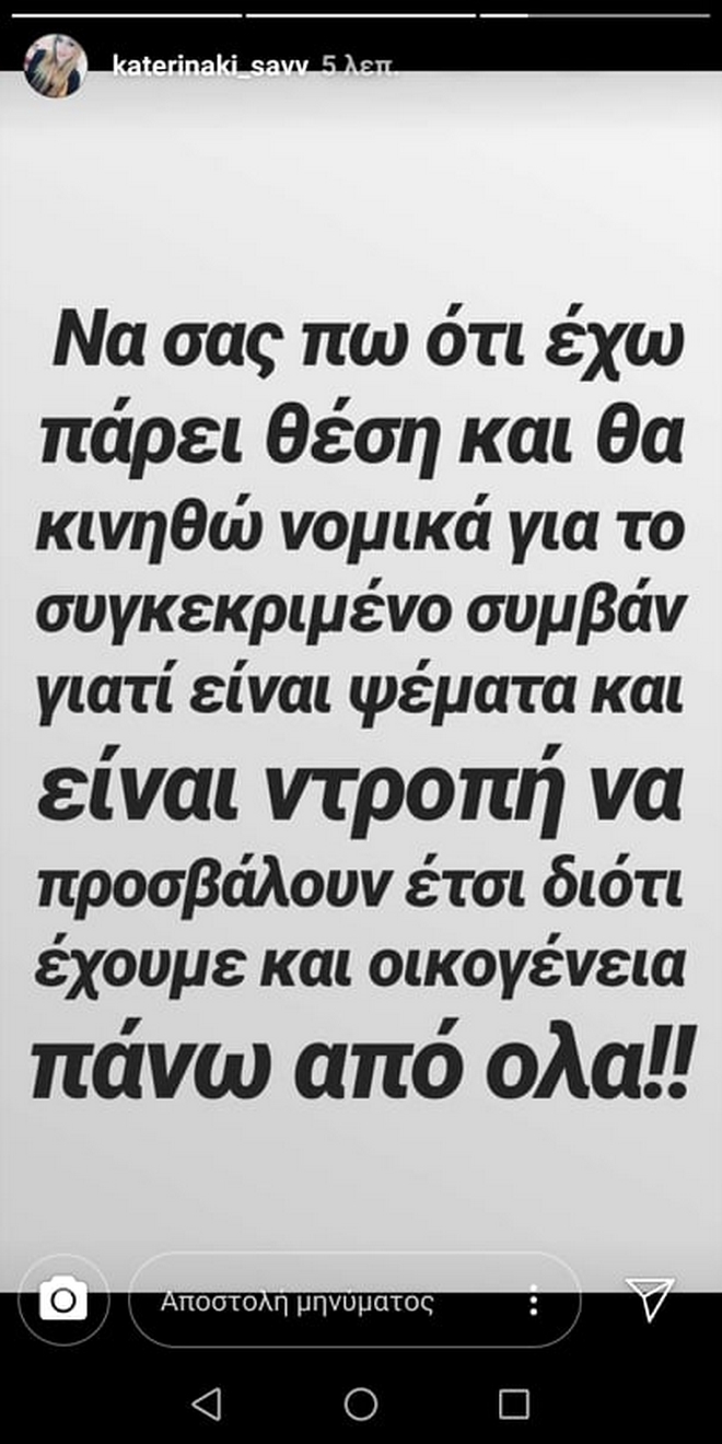 Μάλιστα, η Κατερίνα ανακοίνωσε στο Instagram της πως θα κινηθεί νομικά για όσα διαδίδει ο Αντώνης.