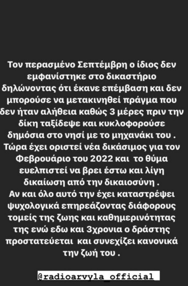 Μάλιστα, αναφέρεται πως τότε υπήρξε καταγγελία και στην αστυνομία, ενώ “κινήθηκε και η διαδικασία αυτοφώρου”, ωστόσο ο παρουσιαστής “απέφυγε τη σύλληψη καθώς την περίοδο εκείνη ήταν στην Αλόννησο”.
