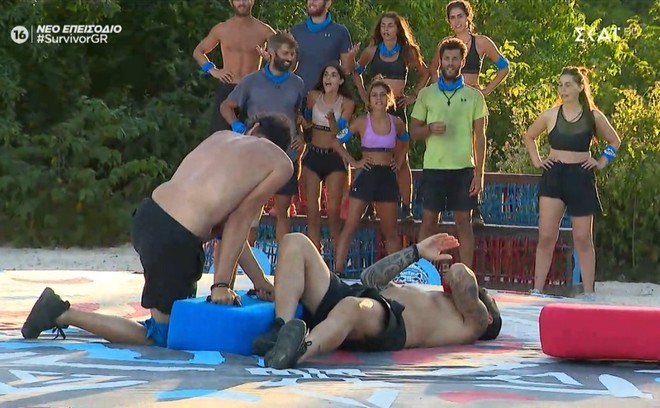 Ο αγώνας του Τριαντάφυλλου με τον Καλλίδη στο Survivor 4 δεν πήγε πολύ καλά. Τραυματίστηκε, έπεσε κάτω και κρατούσε τον λαιμό του. Παρέμβαση των γιατρών.