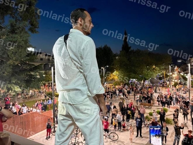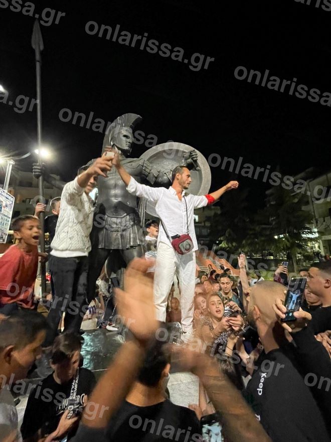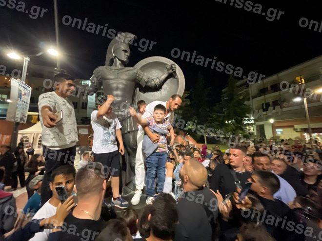 Το πλήθος, όπως αναφέρει το onlarissa, φώναζε “Τσάκα Τσούκας” ρυθμικά, ενώ ο Γιώργος Κατσαούνης στο μικρόφωνο ξεκίνησε λέγοντας “καλώς ήρθατε στην πόλη των Μυρμιδόνων”.