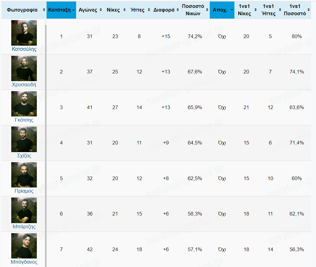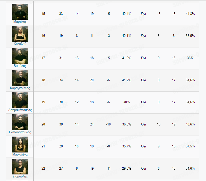 Τα αναλυτικά στατιστικά του Survivor All Star. Ποιος παίκτης βρίσκεται στην κορυφή της κατάταξης και ποιος στον "πάτο".