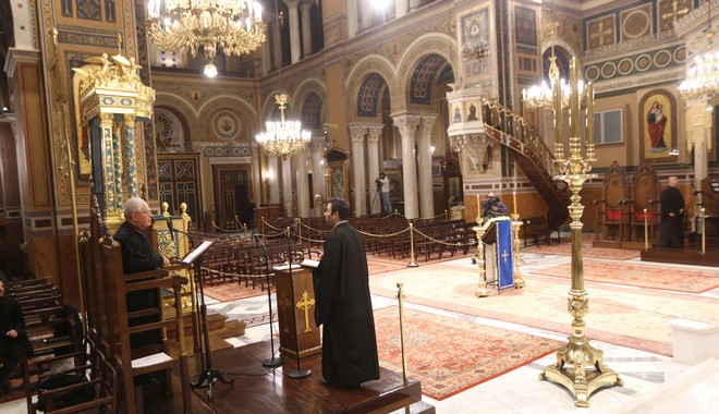 Στην τηλεόραση θα παρακολουθήσουν φέτος οι πιστοί τις Ιερές Ακολουθίες, αφού με τα μέτρα κατά της εξάπλωσης του κορονοϊού απαγορεύεται η μετάβαση και συνάθροιση στους Ιερούς Ναούς.