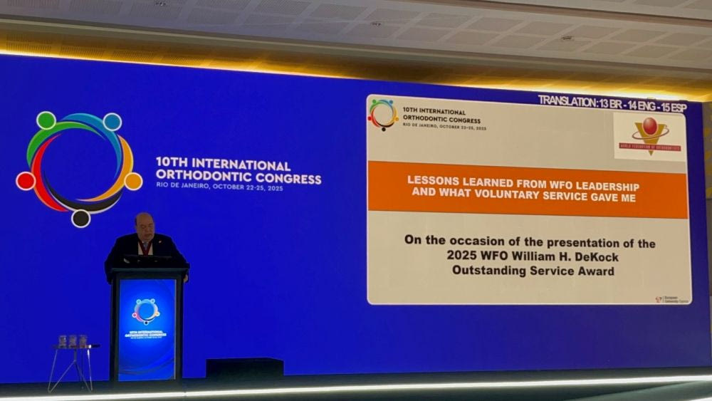 Το 10ο Διεθνές Ορθοδοντικό Συνέδριο της Παγκόσμιας Ομοσπονδίας Ορθοδοντικών (World Federation of Orthodontics – WFO) πραγματοποιήθηκε με μεγάλη επιτυχία στο Ρίο ντε Τζανέιρο στη Βραζιλία στις 22-25 Οκτωβρίου 2025. Το συνέδριο παρακολούθησαν περισσότεροι από 7000 ορθοδοντικοί και ειδικευόμενοι οδοντίατροι από 100 χώρες εκ των οποίων 50 από την Κύπρο και Ελλάδα.