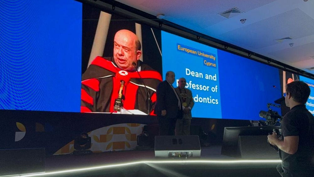 Η συμμετοχή και η διάκριση του Καθηγητή Αθανασίου στο παγκόσμιο συνέδριο της WFO αναδεικνύουν το διεθνές αποτύπωμα και την επιστημονική επιρροή της Οδοντιατρικής Σχολής του Ευρωπαϊκού Πανεπιστημίου Κύπρου, επιβεβαιώνοντας για ακόμη μία φορά τον ηγετικό ρόλο του πανεπιστημίου στην οδοντιατρική εκπαίδευση, την έρευνα και την κοινωνική καινοτομία στην Κύπρο και διεθνώς.