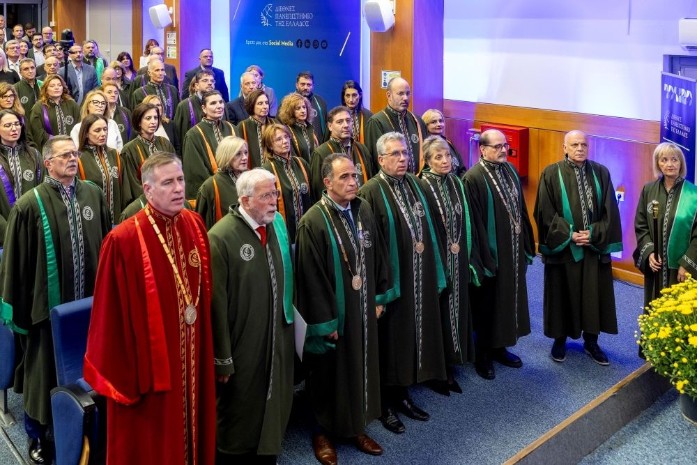Στο κατάμεστο Αμφιθέατρο ο Πρύτανης του Διεθνούς Πανεπιστημίου της Ελλάδος, Καθηγητής Σταμάτης Αγγελόπουλος ανέφερε, μεταξύ άλλων στην ομιλία του «κύριε Πρόεδρε, η σημερινή αναγόρευση αποκτά ξεχωριστή σημασία, διότι ο δικός σας αγώνας για την υγειονομική αριστεία και την τεχνολογική καινοτομία βρίσκει άμεση ανταπόκριση στις βασικές αξίες του Διεθνούς Πανεπιστημίου της Ελλάδος. Το ΔΙΠΑΕ, ως ένα από τα μεγαλύτερα Πανεπιστήμια της χώρας, έχει ενσωματώσει την καινοτομία στον πυρήνα της αποστολής του. Η έμφαση στην έρευνα αιχμής και η διαρκής αναβάθμιση των προγραμμάτων σπουδών μας, αποσκοπούν στη δημιουργία αποφοίτων ικανών να πρωταγωνιστήσουν στο σύγχρονο, απαιτητικό περιβάλλον της υγείας. Οι φοιτητές μας, με γνώση και υψηλή κατάρτιση, αποτελούν τη ζωτική δύναμη που τροφοδοτεί κορυφαίες δομές όπως και ο Όμιλος Ιατρικού Αθηνών. Η επιλογή μας να σας τιμήσουμε αναδεικνύει ακριβώς αυτή τη σύγκλιση στόχων: τη δέσμευση του Πανεπιστημίου στην παραγωγή γνώσης και τη δική σας δέσμευση στην πρακτική εφαρμογή της, με στόχο την αναβάθμιση της ζωής του πολίτη».