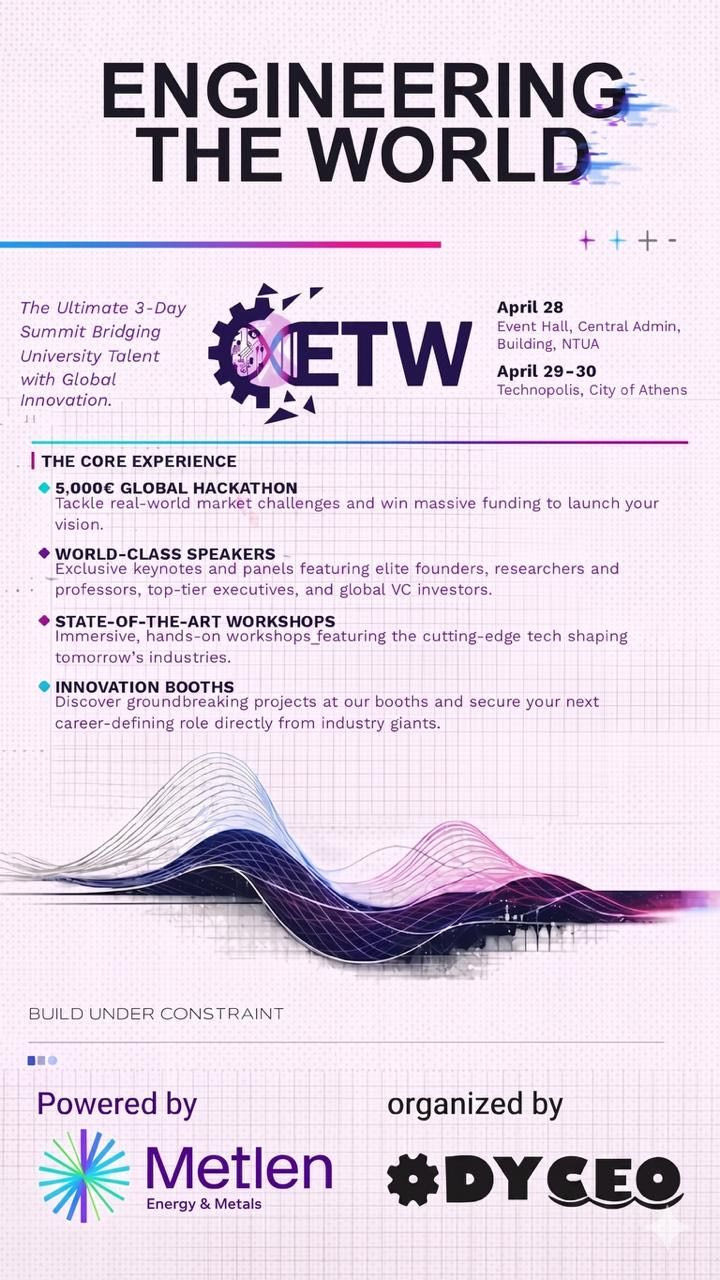 Εισιτήρια & Εγγραφές: https://www.eventbrite.com/e/engineering-the-world-2026-powered-by-metlen-tickets-1981954401969?aff=oddtdtcreator