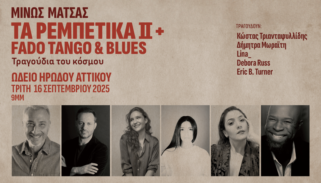 O Μίνως Μάτσας, σε συνέχεια του περσινού sold out, παρουσιάζει την Τρίτη 16 Σεπτεμβρίου 2025 στο Ωδείο Ηρώδου Αττικού τον δεύτερο κύκλο: Τα Ρεμπέτικα II+ Fado Tango & Blues, Τα τραγούδια του κόσμου: οι μουσικές παραδόσεις από διαφορετικό μήκος και πλάτος της γης που εκφράζουν τις ίδιες εμπειρίες και συναισθήματα, τον πόνο, τη φτώχεια, την αγάπη, τον χωρισμό, τη νοσταλγία, τη μοναξιά, τον έρωτα και την ελπίδα. Η μουσική όμως είναι μία. Μας ενώνει, μας δονεί, μας συγκινεί, μας συναρπάζει, από όπου κι αν προέρχεται, αρκεί να έχει αλήθεια.