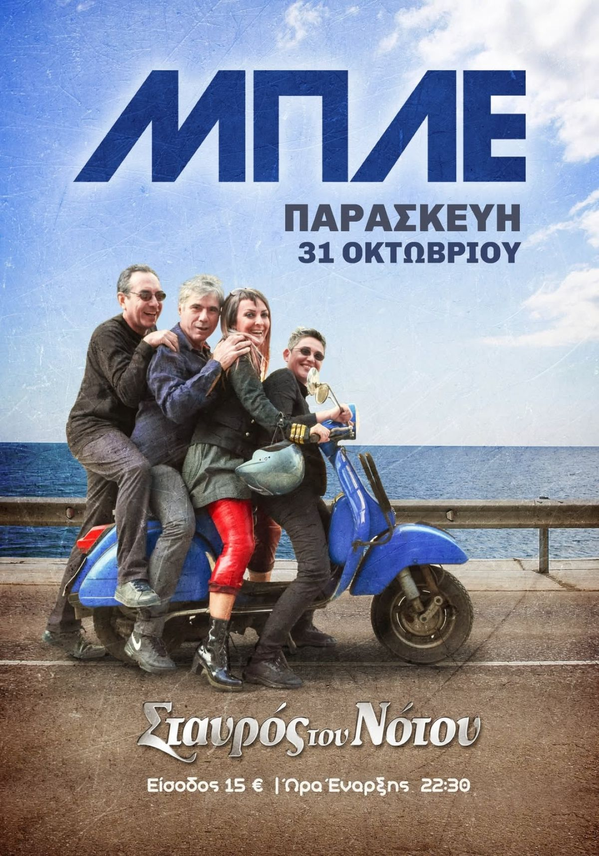 Το συγκρότημα των ΜΠΛΕ δεν χρειάζεται συστάσεις! Διαχρονικά τραγούδια και ιδιαίτερος ήχος, με την απόλυτη Frontwoman Τζώρτζια Κεφαλά,να μας συνεπαίρνει με την ερμηνεία της σε κάθε συναυλία. Παρασκευή 31 Οκτωβρίου στο Σταυρό του Νότου!