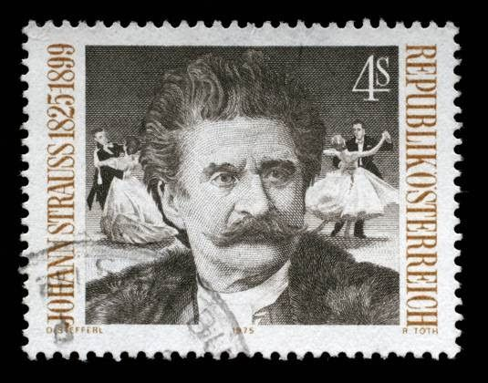 Stamp printed by Austria shows portrait of famous Austrian music composer Johann Strauss, circa 1975. , 21870528.jpg, austria, austrian, classical, close up, closeup, collection, commemorative, communication, composer, correspondence, culture, dance, europe, european, famous, history, hobby, international, johann, legend, mail, masterwork, melody, music, old, operetta, paper, philately, polka, popular, post, postage, postal, postmark, printed, retro, romantic, send, stamp, strauss, success, vintage, waltz,