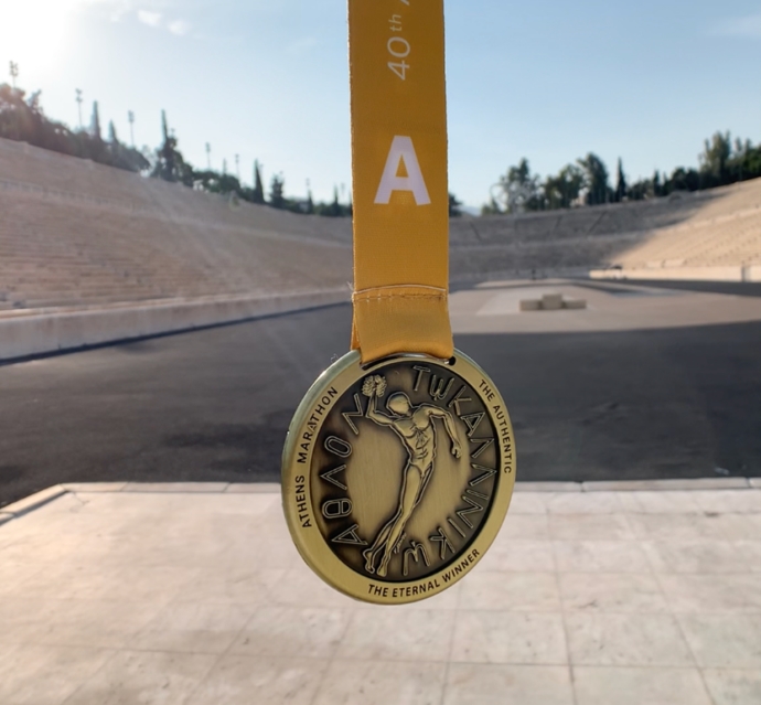 Όχι μόνο επειδή έχει τρέξει σε περισσότερους από 700 Μαραθωνίους σε ολόκληρο τον κόσμο, αλλά γιατί από το 2009 αποτελεί τον εμπνευστή και κατασκευαστή των αναμνηστικών μεταλλίων που παραλαμβάνουν οι δρομείς του Αυθεντικού Μαραθωνίου.