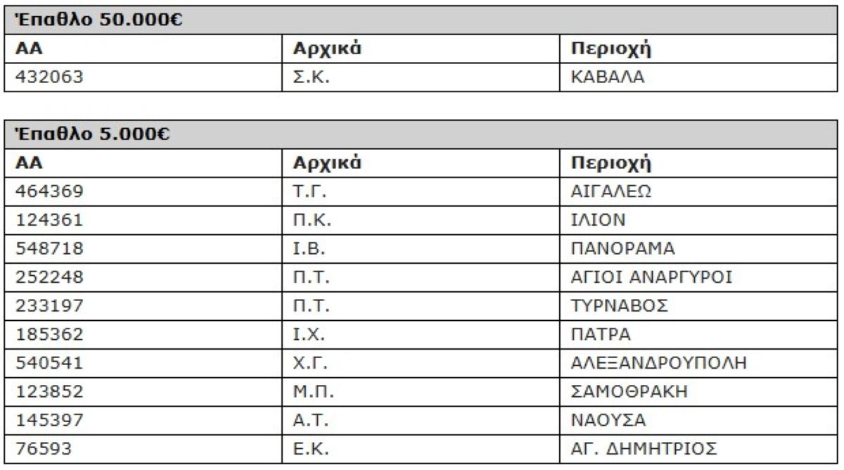 - 1 υπερτυχερός κέρδισε 50.000€,