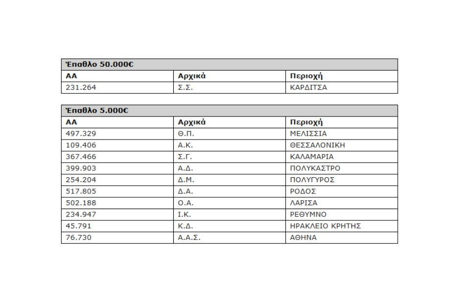 • 1 υπερτυχερός από την Καρδίτσα κέρδισε 50.000€,