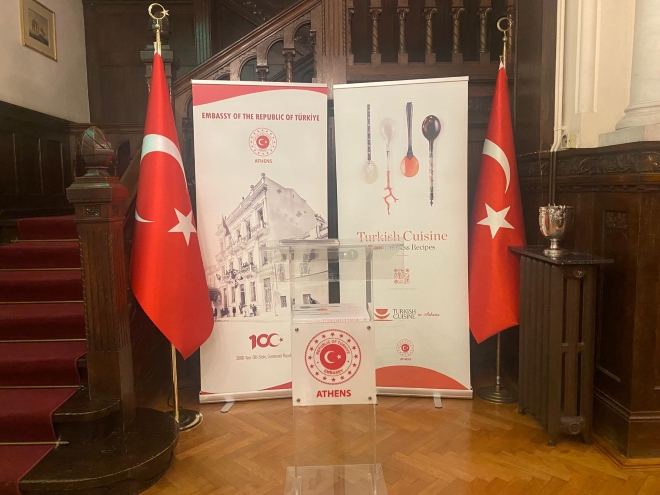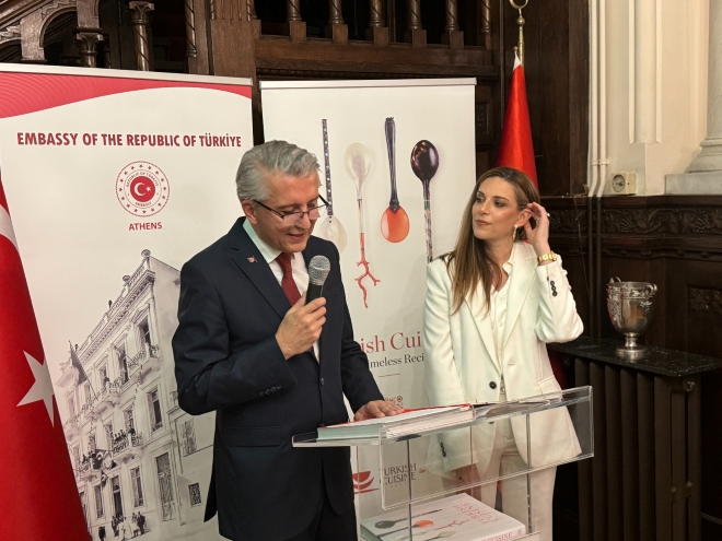 Στην Αθήνα, γαστρονομικές γεύσεις από την περιοχή των ακτών του Αιγαίου, είχαν την ευκαιρία να απολαύσουν οι προσκεκλημένοι του Τούρκου Πρέσβη Çağatay Erciyes και της συζύγου του Hala Erciyes στην εκδήλωση που διοργάνωσαν στην Πρεσβευτική κατοικία, στο πλαίσιο της Εβδομάδας Τουρκικής Γαστρονομίας.