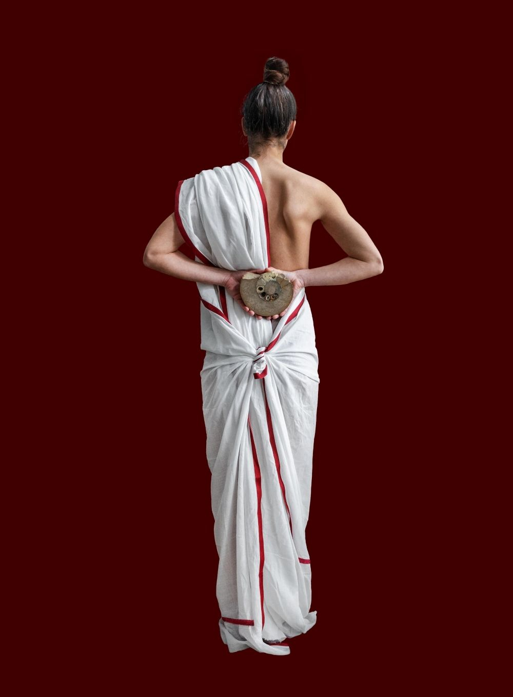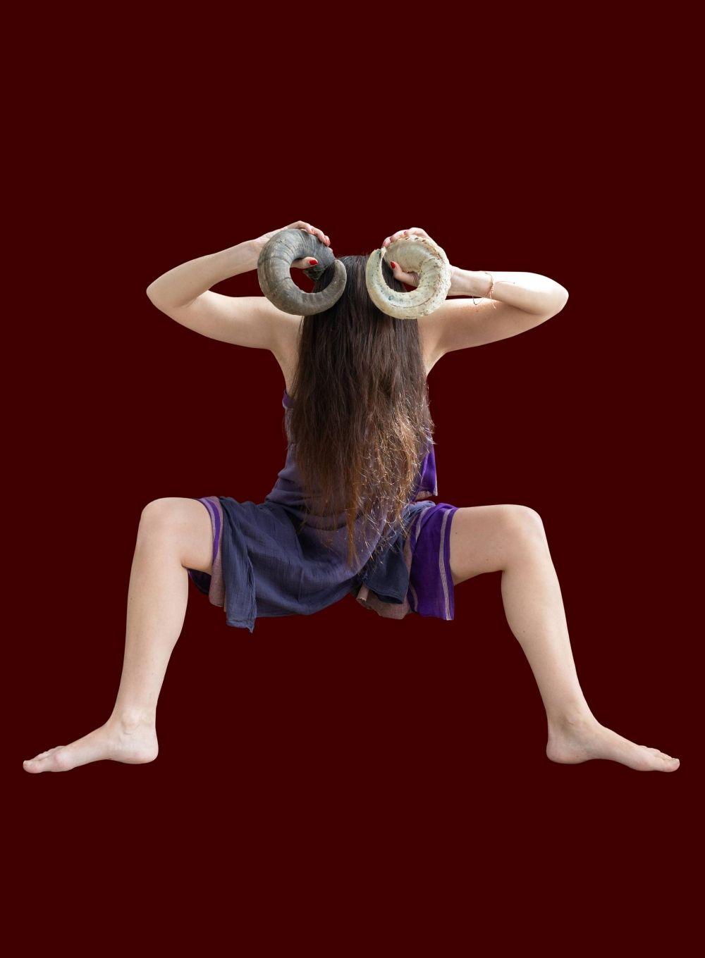 Ο διάδρομος του Art lounge μεταμορφώνεται σε υγρή σπηλιά -ένα τόπο υπέρβασης- όπου η καλλιτέχνης παραθέτει μορφές μυθικές, δαιμονικές. Γυναίκες με μάσκες -ασπίδες, κέρατα ζώων, τυλιγμένες σε ρίζες κισσών, απολιθωμένες στο χρόνο. Πάνω στην δερμάτινη ταπετσαρία του τοίχου, οι σύγχρονες νύμφες της Παπαδημητρίου, αναδύονται ως μορφές στιγμιαίου δισταγμού απέναντι στην αέναη μεταμόρφωση και την ερωτική επιθυμία, επιχειρώντας να ενσαρκώσουν έναν “άλλο” κόσμο, έξω από τη τάξη και τον λόγο. Γυναίκες αλλάζουν δέρμα, δεν εγκλωβίζονται σε μορφές ή ρόλους, λειτουργούν σαν καθρέφτης της φαντασιακής μεταμόρφωσης του ίδιου του ανθρώπου αλλά και του κόσμου.