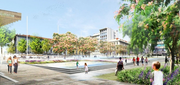 Με περισσότερο πράσινο και υδάτινα στοιχεία θα μας υποδεχθεί και η πλατεία Κοραή που “παντρεύει” την Πανεπιστημίου και τη Σταδίου.