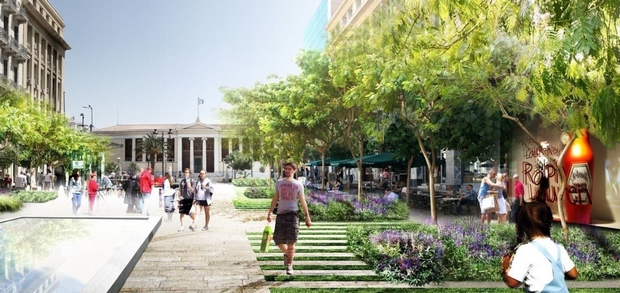Το σχέδιο ανάπλασης μετατρέπει την οδό Πανεπιστημίου από πεδίο διέλευσης αυτοκινήτων σε πεζόδρομο ήπιας κυκλοφορίας.