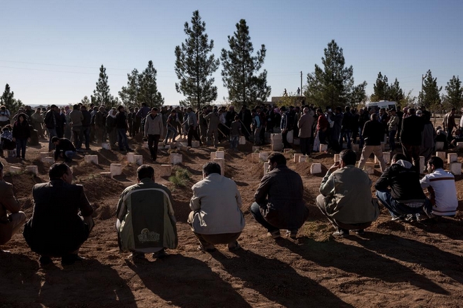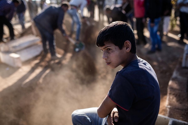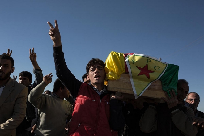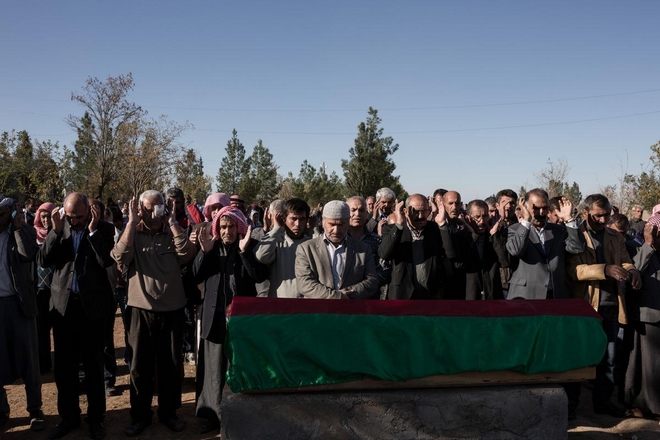Ο Έλληνας φωτορεπόρτερ, μέλος της ομάδας του φωτογραφικού πρακτορείου Sooc, βρέθηκε στον προσφυγικό καταυλισμό των Κούρδων στο Σουρούκ της Τουρκίας και απαθανάτισε την κηδεία ενός μαχητή της κουρδικής πολιτοφυλακής YPG.