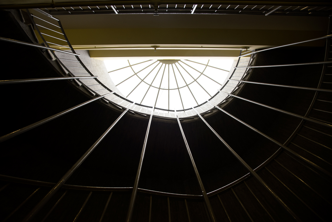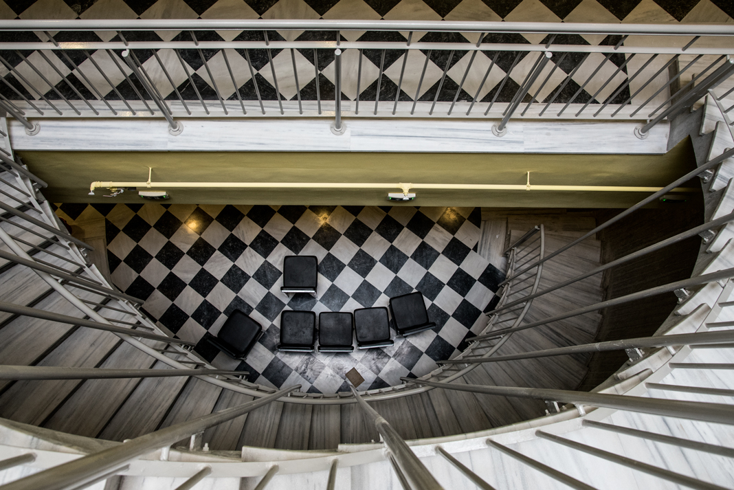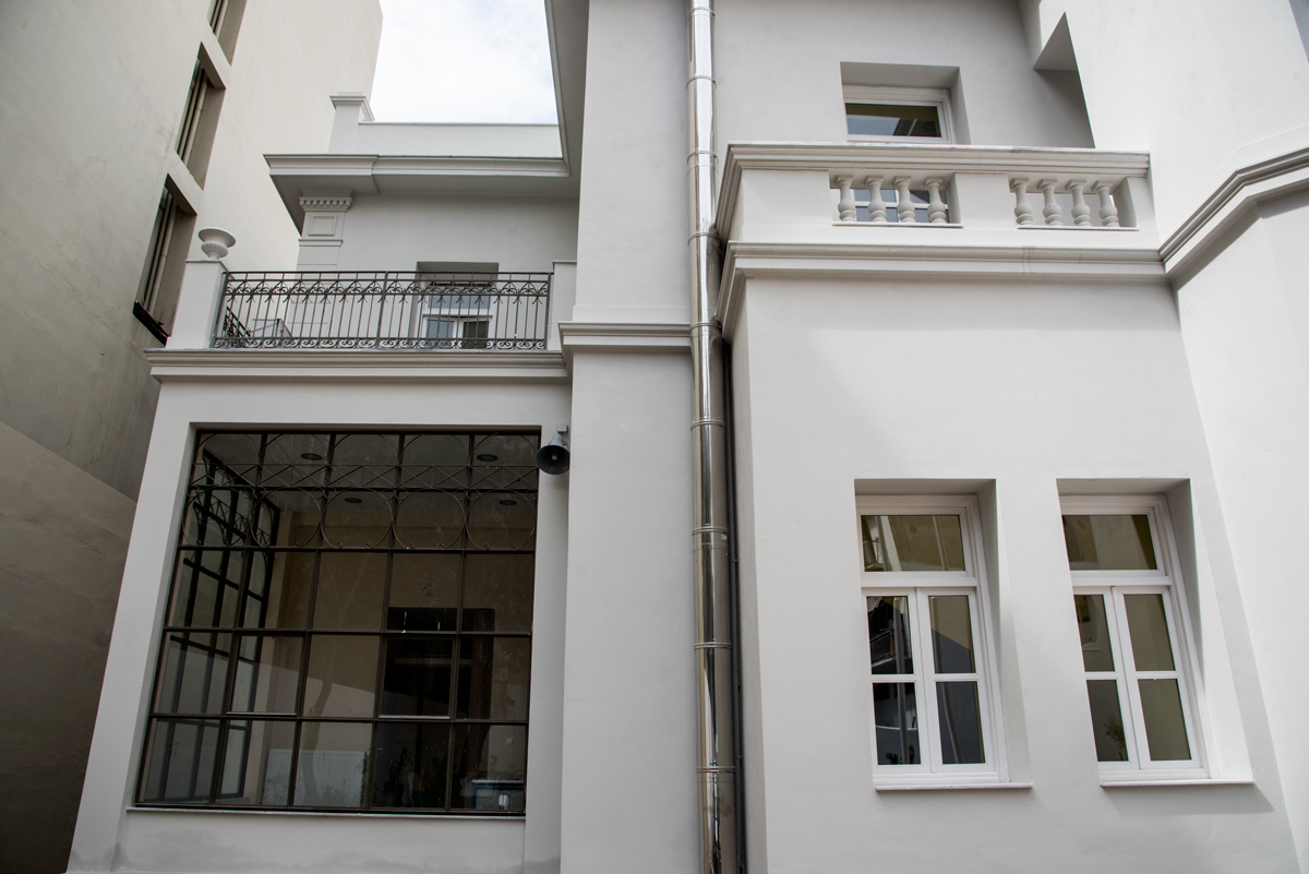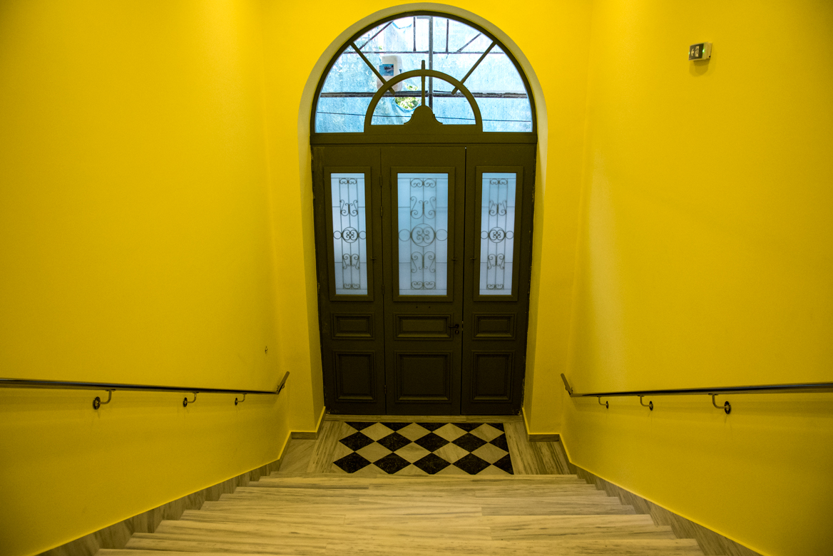 «Όταν παραλάβαμε το κτίριο δεν υπήρχαν καν όροφοι, επειδή ήταν ξύλινα τα πατώματα, σε ένα σημείο είχε καεί μέχρι πάνω, έβλεπες την οροφή» σημειώνει ο κύριος Χριστοφιλογιάννης καθώς μας ξεναγεί στους ορόφους. «Η μεγαλύτερη δυσκολία του έργου ήταν ότι έπρεπε να στηρίξουμε το “κέλυφος” του κτιρίου, την πέτρινη κατασκευή, προκειμένου να μπορέσουμε να γκρεμίσουμε και να ανακατασκευάσουμε το εσωτερικό» επισημαίνει και εξηγεί: «Καθαιρέσαμε τους παλιούς σοβάδες, αντιστηρίξαμε τα πέτρινα τοιχία με εξωτερικό σκελετό και τοποθετήσαμε τσιμεντοενέματα σε όλους τους αρμούς της πέτρας με αποτέλεσμα ο αρμός, από εκεί που ήταν ένα σαθρό υλικό, πλέον να έχει μπει γαλάκτωμα μπετού και να έχει συγκολήσει τις πέτρες. Καθαιρέσαμε όλο το εσωτερικό, τοποθετήσαμε βλήτρα στην πέτρα και ενώσαμε τα βλήτρα της πέτρας με τον οπλισμό του μπετού που έχουμε ρίξει εσωτερικά. Η πέτρα της αρχικής κατασκευής πλέον έχει βλήτρα που στηρίζονται στο μπετό και όλα αυτά έχουν γίνει ένα σώμα».