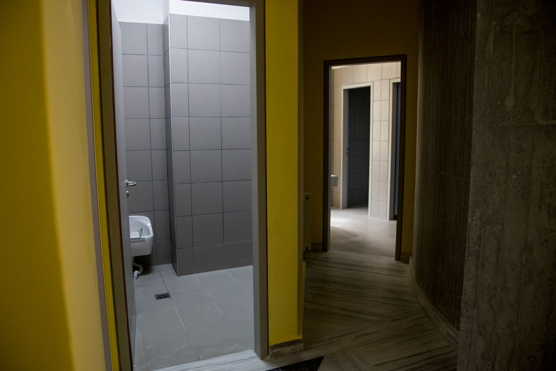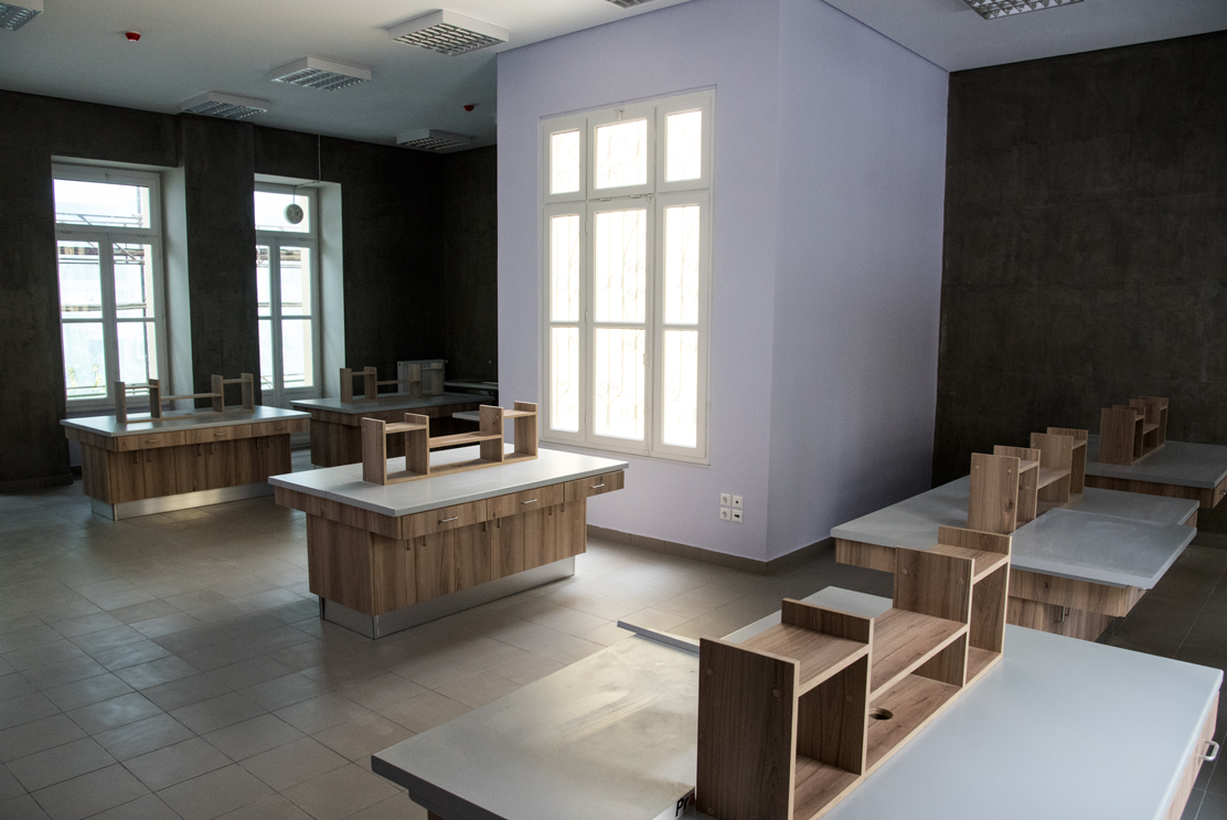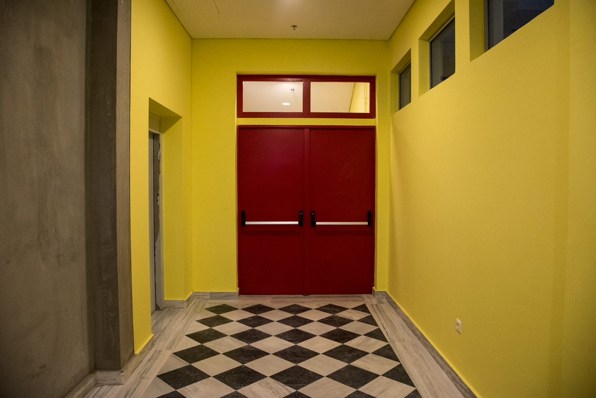 Περάσαμε την είσοδο επί της οδού Χέυδεν 35 και βρεθήκαμε στο προαύλιο του σχολείου λίγες μέρες πριν γεμίσει με μαθητές. Όπως μας επεσήμανε ο Βασίλης Χριστοφιλογιάννης, εργοταξιάρχης από την πλευρά της αναδόχου εταιρίας Αττική Δίοδος ΑΤΕ, μόνη εκκρεμότητα είναι η δημιουργία ενός γηπέδου μπάσκετ για το οποίο έχουν μπει οι βάσεις στον προαύλιο χώρο, ενώ εσωτερικά τα πάντα είναι έτοιμα για τη νέα σχολική σεζόν, με τις τελευταίες εργασίες καθαριότητας και τακτοποίησης να βαίνουν προς ολοκλήρωση. Εξωτερικά, παραμένει η σκαλωσιά και το χαρακτηριστικό μπλε κάλυμμα για λίγο καιρό ακόμα μέχρι να αποκαλυφθεί το αναγεννημένο κτιριακό συγκρότημα.