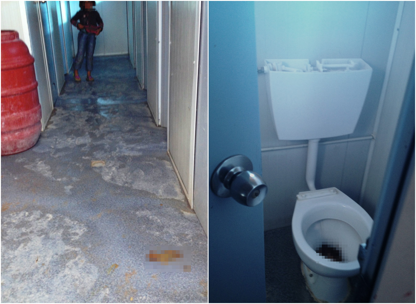 Η περίφραξη είναι διάτρητη. Περνάμε από μια τρύπα στο χώρο φιλοξενίας. Σε σημεία υπάρχουν βρύσες με τρεχούμενο νερό. Όσες λειτουργούν, είναι σε χαμηλή πίεση, προφανώς για να παραμένει σε χαμηλά επίπεδα η κατανάλωση, λόγω της έλλειψης νερού στην περιοχή. Οι τουαλέτες είναι σε άθλια κατάσταση. Ακαθαρσίες παντού. Με δυσκολία στέκεσαι ακόμα και στην εξωτερική πόρτα. Κι όμως, από μέσα βγαίνουν μικρά παιδιά. Στις ντουζιέρες, λιμνάζοντα νερά. Είναι φανερό ότι η αποχέτευση δεν λειτουργεί. Οι πόρτες δεν κλειδώνουν. Όπως θα εξηγήσει αργότερα στο NEWS247 η υπεύθυνη της Ύπατης Αρμοστείας του ΟΗΕ για τους Πρόσφυγες, Barbara Colzi, «στη ΒΙΑΛ έχουμε αρκετά περιστατικά σεξουαλικής βίας διότι τα ντους και οι τουαλέτες δεν έχουν πόρτες και είναι εύκολο για κάποιον να εισβάλει. Τώρα λοιπόν, οι συνεργάτες μας από την οργάνωση Samaritan’s Purse, εγκαθιστούν πόρτες στα ντους για να υπάρχει καλύτερη προστασία…».