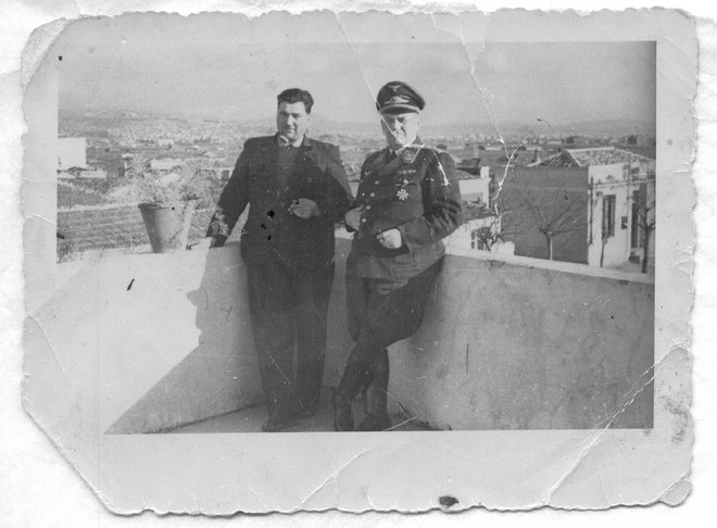 Ο πρόεδρος της Κοινότητας Ν. Κορδελιού Δημ. Κολοκυθάς με τον Διοικητή των κατοχικών Δυνάμεων, 1943 (συλλογή οικογένειας Κολοκυθά)