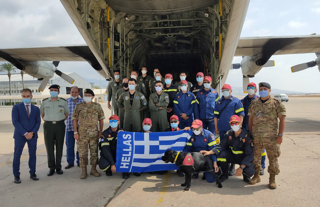 Η ομάδα που μετέβη στο Λίβανο αποτελείτο από από 12 άτομα, ένα διασωστικό σκύλο, δύο οχήματα και ειδικό εξοπλισμό με αεροσκάφος της Πολεμική Αεροπορίας C-130.