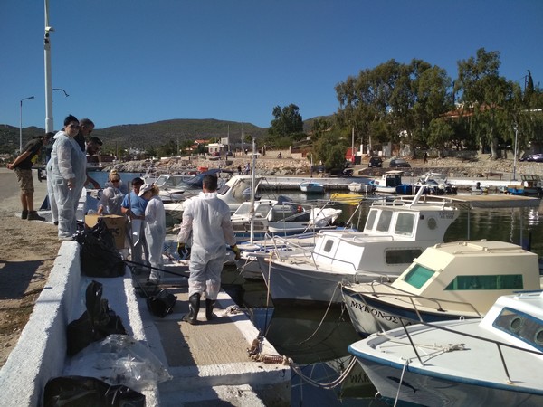 Στη μάχη με τον χρόνο, προκειμένου να μην ομογενοποιηθεί το μαζούτ και μετατραπεί σε πέτρωμα στον πυθμένα της θάλασσας, ρίχτηκαν και εθελοντές κάτοικοι, φορείς του δήμου και το ΚΕΘΕΑ Νόσος που με απόχες και ειδικές πετσέτες περισυλλέγουν μαζούτ από το λιμανάκι του ΝΟΣ – Παλιό Θεατράκι.