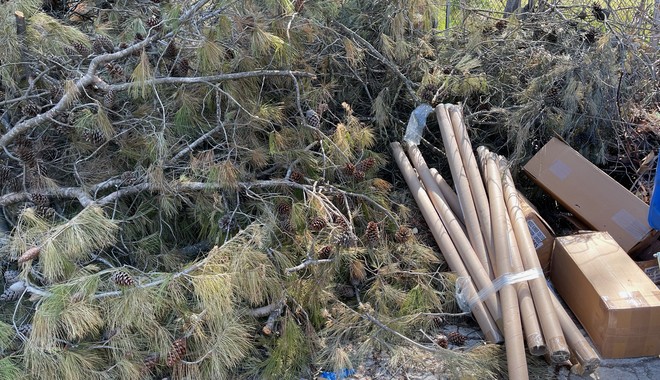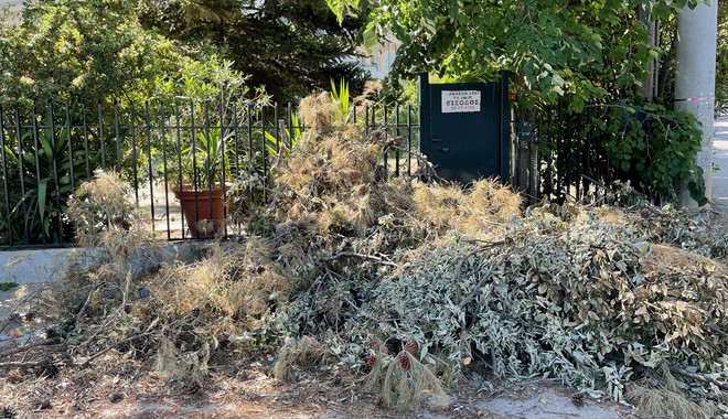 Πρόσφατα έγιναν εργασίες της ΔΕΔΔΗΕ ώστε να καθαριστούν κολόνες στις οποίες υπήρχαν μπλεγμένα κλαδιά, με αποτέλεσμα να προστεθούν και αυτά στα βουνά που βρίσκονται μέσα στην κατοικημένη περιοχή.
