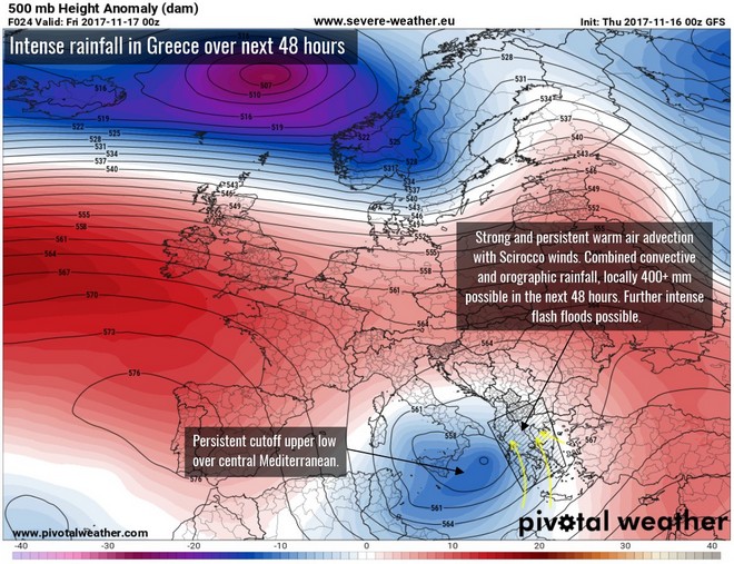 Βέβαια, σε μεγάλα πλημμυρικά επεισόδια, ό,τι και να γίνει θα έχουμε προβλήματα. Και από ό,τι βλέπουμε τις τελευταίες ημέρες, έχουμε ένα σύστημα που δίνει μεγάλα ύψη βροχής. Έτσι είχαμε προβλήματα και στη Σύμη, πριν λίγες ημέρες, στη Μάνδρα το δραματικό γεγονός της Τετάρτης. Δυστυχώς, τα φαινόμενα συνεχίζονται και την Πέμπτη (16/11) και την Παρασκευή (17/11)”.