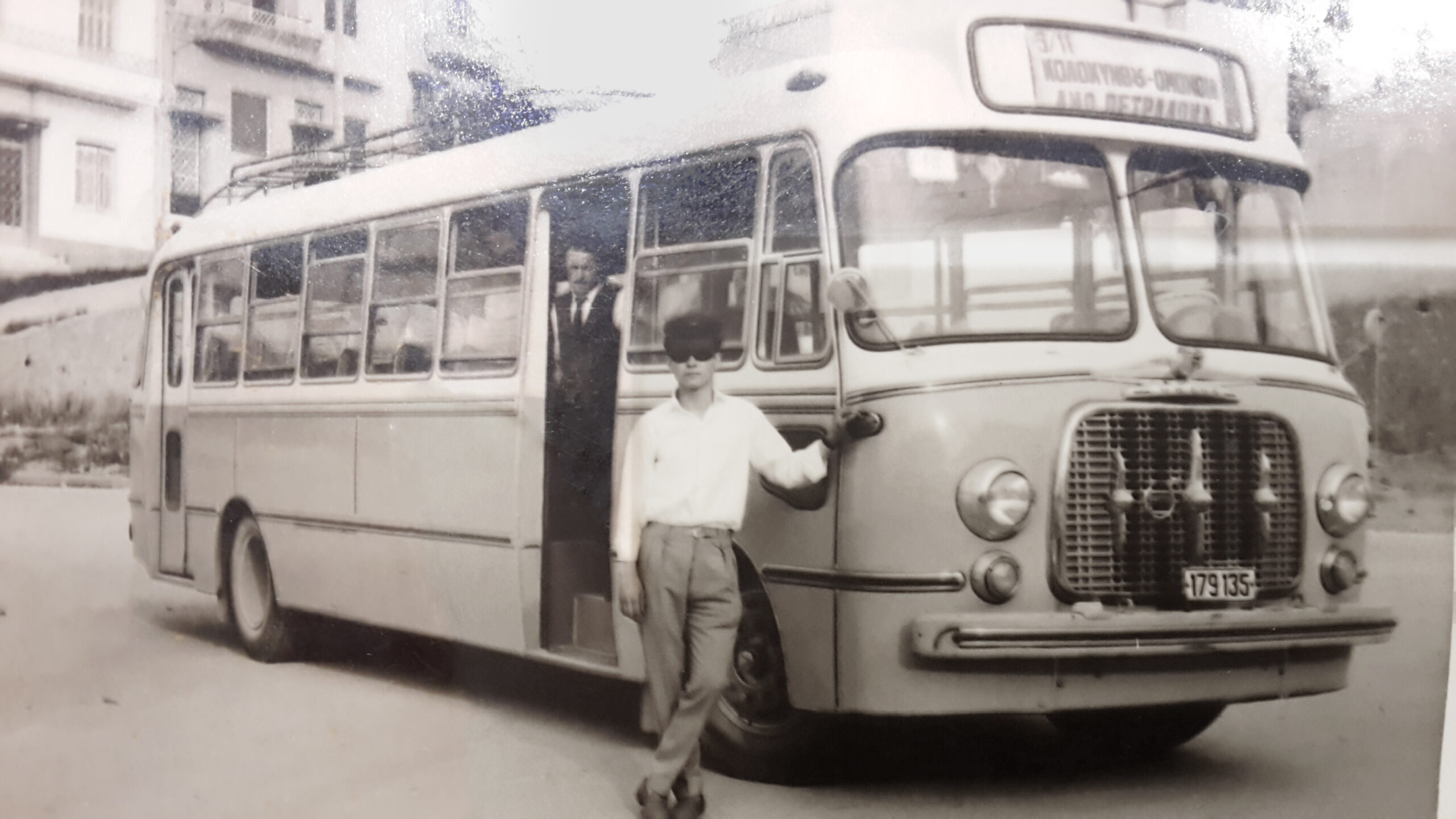 «Πήρα επαγγελματικό δίπλωμα το 1947 και μετά από δύο χρόνια, στα 25 μου, απέκτησα το δικό μου λεωφορείο, το Volvo 13 (179 135) με αριθμό 13. Όταν έμαθα ότι ζητούσαν λεωφορεία στην Αθήνα, αποφάσισα να έρθω στην πρωτεύουσα μαζί με την οικογένεια μου, εναποθέτοντας τις ελπίδες για μια καλύτερη ζωή. Τα πρώτα τρία χρόνια έκανα την γραμμή Κολοκυνθούς – Πετράλωνα και, αργότερα, όταν συστάθηκαν τα ΚΤΕΛ, είχα το 4ο ΚΤΕΛ και η διαδρομή που έκανα ήταν Δάφνη – Καλαμάκι – Ηλιούπολη. Δουλεύαμε όλη την εβδομάδα και μία ημέρα παίρναμε ρεπό. Αν έκανα την πρωινή βάρδια, έπρεπε στις πέντε το πρωί να βρίσκομαι στο τέρμα της γραμμής. Ξυπνούσα, λοιπόν, από τις τέσσερις το πρωί, περνούσε υπηρεσιακό λεωφορείο από όλη την Αττική και μας άφηνε στην Ομόνοια. Τα “πεντάρια” λεωφορεία, αυτά δηλαδή που έκαναν την πρωινή βάρδια, έκαναν διάλειμμα 9 με 11 το πρωί. Και μετά συνεχίζαμε μέχρι τη μία το μεσημέρι. Όταν η κατάσταση ήταν πολύ δύσκολη οικονομικά έκανα και δύο βάρδιες σερί, κάτι που ήταν παράνομο βέβαια».
