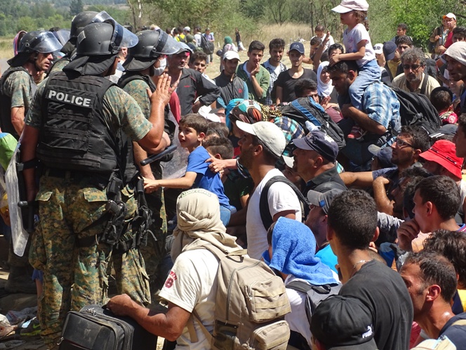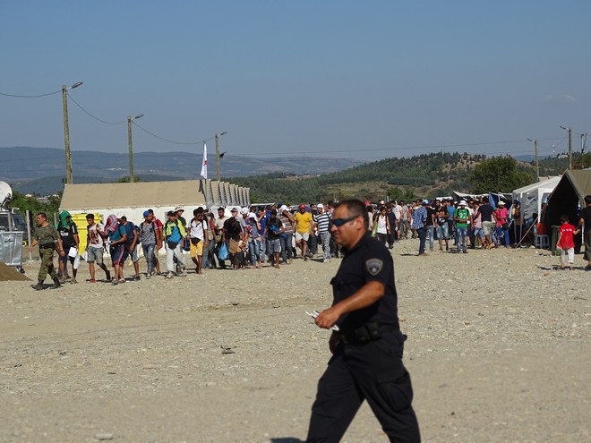 Οι Σκοπιανοί τους αφήνουν να περάσουν. Σε λίγο θα μεταφερθούν σε κέντρο υποδοχής προσφύγων στη συνοριακή πόλη Γευγελή. Εκεί θα βρουν νερό και φαγητό που θα τους προσφέρουν οι εθελοντές της Legis και του Ερυθρού Σταυρού, καθώς και μερικές τέντες για να προστατευθούν προσωρινά από τον ήλιο, όσο θα περιμένουν να ολοκληρωθεί η καταγραφή τους.