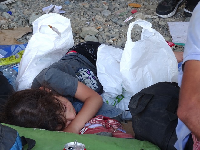 Τους συναντώ ξανά κάτω από ένα υπόστεγο στο κέντρο υποδοχής. Η μικρή Λίντα κοιμάται. Ο Γιόσεφ είναι ανήσυχος και κουρασμένος. «Εδώ και 10 μέρες κοιμόμαστε πάνω σε πέτρες. Είμαστε πάρα πολύ βρώμικοι, χρειαζόμαστε μπάνιο. Τα παιδιά έχουν εξουθενωθεί. Οι μπαταρίες τους έχουν αδειάσει. Ακόμα κι εγώ έχω αδειάσει», μου λέει.