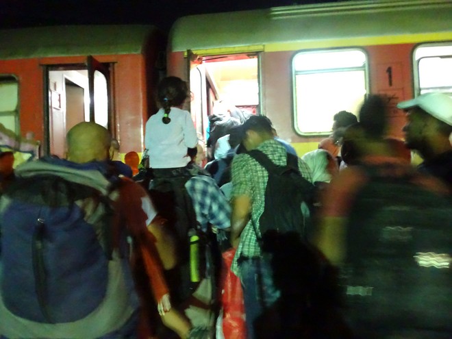 Tο πρώτο τραίνο καταφθάνει στις 8 το βράδυ αλλά δεν τους χωράει όλους. Πρέπει να περιμένουν κι άλλο, καθισμένοι στο χώμα και τις πέτρες, κανείς δεν ξέρει για πόσο. Όπως μου εξηγούν οι εθελοντές, η ΠΓΔΜ δεν διαθέτει αρκετά τραίνα για όλους αυτούς τους χιλιάδες ανθρώπους που καταφθάνουν καθημερινά. Ωστόσο, η αναμονή εντείνει την αγωνία τους. Θα φτάσουν νύχτα στο Ταμπανόβτσε και θα πρέπει να περπατήσουν μέσα στο σκοτάδι για να περάσουν στη Σερβία.