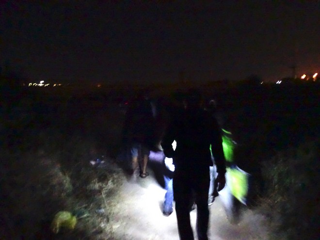 Τους ακολουθώ μέσα στο σκοτάδι μέχρι τη συνοριογραμμή. Δεν μου επιτρέπεται να περάσω μαζί τους, ελπίζω να τους συναντήσω ξανά σε λίγες ώρες στη Σερβία.