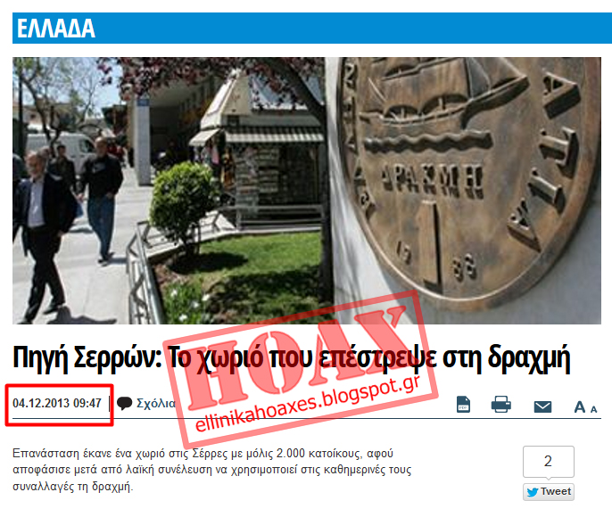 «Την Πρωταπριλιά, κάθε ιστοσελίδα θα βάλει ένα ψέμα για το έθιμο. Έτσι, αυτομάτως, έχουμε παραγωγή χιλιάδων ψεύτικων ειδήσεων. Αν τύχει να διαβάσεις μία από αυτές σε άλλο blog ή σελίδα μετά από ένα μήνα, δεν υπάρχει καμία αναφορά στην αρχική πηγή. Ο δεύτερος βάζει ως πηγή το πρώτο, ο τρίτος το δεύτερο, και ούτω καθεξής. Χάνονται, λοιπόν, η αρχική πηγή και η ημερομηνία. Δεν καταλαβαίνεις πια ότι είναι αστείο. Σύμφωνα με μια τέτοια, φετινή “είδηση”, πιάστηκε φορτηγό με 3,5 τόνους χρυσού στα Γιάννενα. Είχαν μαζέψει λέει όλο το χρυσό από τα ενεχυροδανειστήρια της Ελλάδος. Είναι πρωταπριλιάτικο, αλλά δεν το καταλαβαίνεις. Άλλο, παλαιότερο, με μεγάλο σουξέ: στο χωριό Πηγή στις Σέρρες σταμάτησαν να συναλλάσσονται σε ευρώ κι έβγαλαν από το σεντούκι τις δραχμές. Κυκλοφορεί στο ίντερνετ από την Πρωταπριλιά του 2012. Εννοείται ότι η Πηγή είναι ανύπαρκτο χωριό».