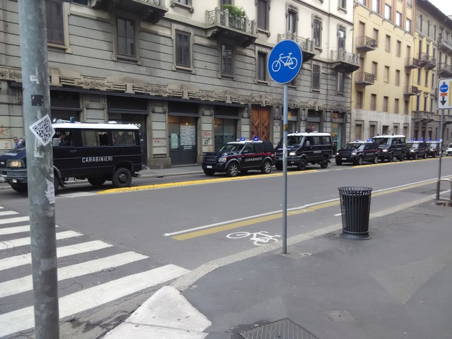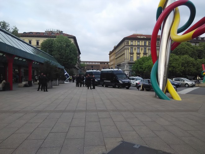 Έξω από την πόλη, στο Fierraοκ Milano, σημείο όπου λαμβάνει χώρα η έκθεση τίποτα δεν προδίδει την έκταση των επεισοδίων στο κέντρο της πόλης. Στον τερματικό σταθμό του μέτρο που οδηγεί στην έκθεση δεκάδες αστυνομικοί και άνθρωποι της πολιτικής προστασίας φροντίζουν ώστε όλα να διεξαχθούν ομαλά ” Δεν βρίσκονται εδώ για τα χθεσινά γεγονότα. Έτσι κι αλλιώς προβλεπόταν η παρουσία τους”. Μου λέει ο υπεύθυνος του μέτρο. “Δεν νομίζω να έχουμε και πάλι επεισόδια” συμπληρώνει “αν και στην Ιταλία δεν έχουμε ισχυρούς νόμους και οι συλληφθέντες θα αφεθούν ελεύθεροι τη Δεύτερα”.