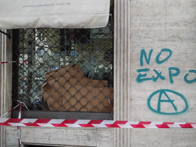 Οι ζημιές στη γύρω περιοχή υπολογίζεται πως ξεπερνούν το 1,5 εκατ ευρώ. “Δεν είναι κάτι το ιδιαίτερο” μου αναφέρει ο Μιλανεζος που κάθεται δίπλα μου στο μέτρο και διαβάζει για τα γεγονότα στο ταμπλέτ του. “Όπου κι αν γινόταν η έκθεση θα μαζεύονταν ακραίοι αναρχικοί από όλη την Ευρώπη να δημιουργήσουν επεισόδια. Ήθελαν να χτυπήσουν στρατηγικούς στόχους, όπως τράπεζες”, συμπληρώνει.