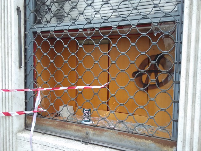 Τα συνθήματα στους τοίχους και οι σπασμένες βιτρίνες μαρτυρούν το χάος που επικράτησε το απόγευμα της Παρασκευής.