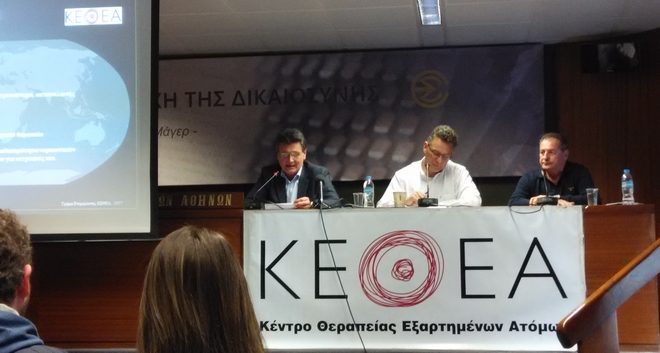 Ο Β. Γκιτάκος, διευθυντής του ΚΕΘΕΑ, παρουσίασε τις προτάσεις της Επιτροπής η οποία θίγει εκ νέου την ανάγκη αντιμετώπισης των χρηστών με σεβασμό στα ανθρώπινα δικαιώματα και στην αρχή της αναλογικότητας.