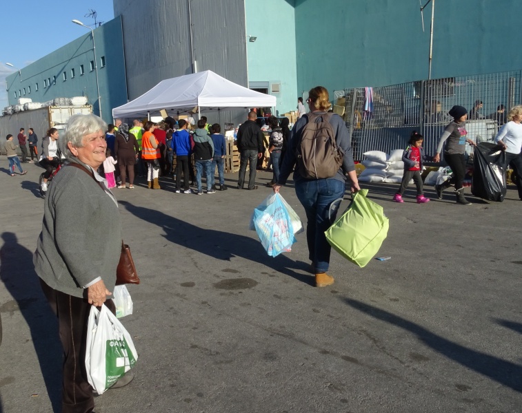 Απόγευμα Τετάρτης στο λιμάνι του Πειραιά, στις πύλες Ε1, 2, 3, 6, 7 και στην Πέτρινη Αποθήκη έχουν συγκεντρωθεί 2.500 – 3.000 πρόσφυγες και μετανάστες. Οι χώροι αναμονής των επιβατών έχουν μετατραπεί σε προσωρινούς χώρους φιλοξενείας. Δίπλα στα εκδοτήρια, σκηνές, απλωμένα ρούχα και παιδικά παπούτσια… Ακολουθώντας το κάλεσμα συλλογικοτήτων και ΜΚΟ για προσφορά ειδών πρώτης ανάγκης, απλοί πολίτες, εργαζόμενοι, φοιτητές, ηλικιωμένοι, συνταξιούχοι, μητέρες, καταφθάνουν συνεχώς με σακούλες και κούτες. Τρόφιμα, φάρμακα, ρούχα, κουβέρτες, ό,τι μπορεί ο καθένας. Η ανθρωπιά γίνεται πράξη.