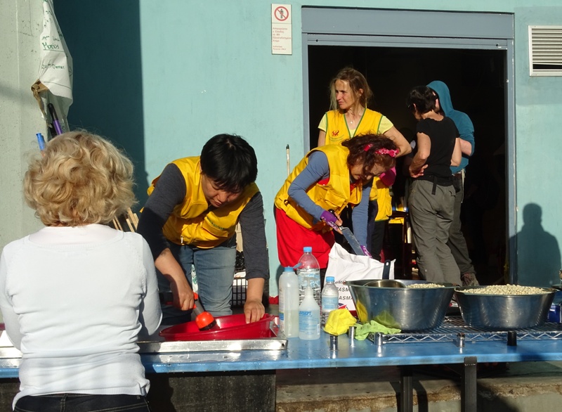 “Έχουν γεμίσει οι αποθήκες. Τώρα λέμε, αν κάποιος θέλει να φέρει πράγματα, να φέρει από Δευτέρα γιατί δεν χωράνε” επισημαίνει η κυρία Φωτεινή και εξηγεί πως δεν υπάρχουν υποδομές. “Τουλάχιστον υπάρχουν τουαλέτες και 2-3 ντουζιέρες”.”Ευτυχώς οι άνθρωποι του ΟΛΠ βοηθάνε, όταν υπάρχει κάποια ανάγκη τους το λέμε, να τώρα πλένουν τις τουαλέτες. Γενικά είναι πολύ ανεβασμένο το επίπεδο και του κόσμου που προσφέρει και του κόσμου που δέχεται. Δεν έρχεται κανείς εδώ για να πάρει εύσημα, αλλά επειδή θέλει πραγματικά να βοηθήσει” σημειώνει η Γιώτα, δημόσια υπάλληλος, που εδώ και μία εβδομάδα έρχεται καθημερινά μετά τη δουλειά της.