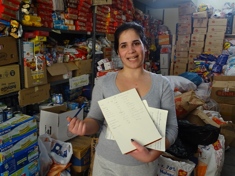 “Τις προάλλες μπήκε μέσα ένας παππούς με δυο μερίδες φαγητό. Επειδή εδώ δεν δεχόμαστε μαγειρεμένο φαγητό, όταν δεν ξέρουμε από που έρχεται, μας λέει: ‘σας παρακαλώ πολύ, είναι πάρα πολύ καθαρό, το πήρα από το συσσίτιο, εγώ δεν πειράζει να μην φάω σήμερα, αυτοί το έχουν πιο πολύ ανάγκη. Αν ήμουν πιο κοντά θα ερχόμουν κάθε μέρα, αλλά μένω στη Σαλαμίνα’. Όπως καταλαβαίνεις, για να τρώει στο συσσίτιο δεν έχει και λεφτά να μετακινείται. Αυτό είναι ενδεικτικό του τι βλέπεις και ακούς εδώ καθημερινά”, προσθέτει.