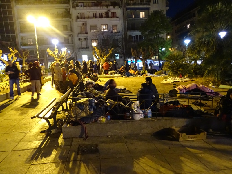 Λίγο μετά τις 20:00, στην πλατεία Βικτωρίας, η κατάσταση είναι απελπιστική. Εκεί δεν υπάρχουν τουαλέτες ούτε υπόστεγα. Οι άνθρωποι κοιμούνται στα παρτέρια, πάνω σε χαρτόνια. Πάνω σε ένα δέντρο η φωτογραφία ενός 10χρονου κοριτσιού που αγνοείται. Ένα παγκάκι έχει μετατραπεί σε ιατρείο. Δύο κυρίες πλησιάζουν μία εθελόντρια και τη ρωτάνε τι φάρμακα χρειάζονται για να φέρουν. Τους τα γράφει σε ένα χαρτί. ” Σήμερα είναι αυτοί, αύριο μπορεί να είμαστε εμείς“.