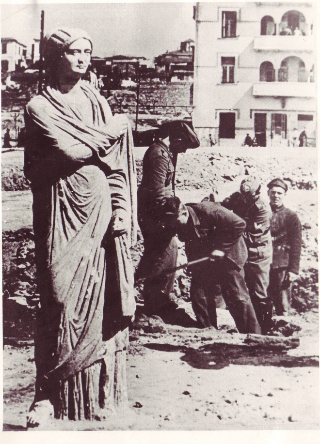 Τον Μάρτιο του 1944, ενώ γίνονται έργα για κατασκευή ορυγμάτων στο κέντρο της Θεσσαλονίκης, αποκαλύπτεται τυχαία το άγαλμα της Ηρακλειώτισσας. Ένα ρωμαϊκό γλυπτό εξαιρετικής τέχνης, ύψους 2,11 μέτρων. Μερικές ημέρες αργότερα οι ναζιστικές δυνάμεις κατοχής διοργανώνουν εκδήλωση και παραδίδουν το άγαλμα στις ελληνικές αρχές. Οι φωτογραφίες δημοσιεύονται στον Τύπο και η ναζιστική προπαγάνδα φροντίζει να διαδώσει πως αναδεικνύει την πολιτιστική κληρονομιά της χώρας. Ο Χίτλερ όμως με κατεπείγον έγγραφο διατάζει την μεταφορά του αγάλματος στο μουσείο της πόλης Λιντς, της γενέτειράς του που στόχευε να μετατρέψει σε πολιτιστική πρωτεύουσα του Τρίτου Ράιχ. Δύο μήνες μετά την παράδοση του αγάλματος στις ελληνικές αρχές, Γερμανοί στρατιώτες το παίρνουν και το μεταφέρουν στη Βιέννη όπου εκτίθεται για δύο μήνες. Στη συνέχεια η αριστοκράτισσα της Θεσσαλονίκης παραδίδεται στον υπεύθυνο του Μουσείου του Λιντς, ενώ διαδοχικά κοσμεί τις κατοικίες του ίδιου του Χίτλερ και του Γκέμπελς στις Αυστριακές Άλπεις.