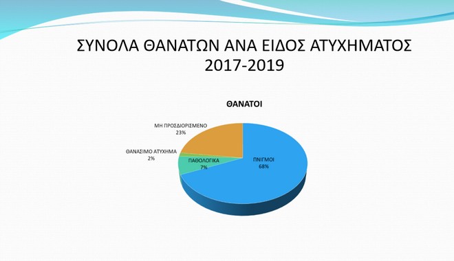 Ένα άλλο στοιχείο που αξίζει να σημειωθεί και να διευκρινιστεί είναι το αίτιο του θανάτου. Κι αυτό διότι, δεν είναι μόνο οι πνιγμοί που έχουν στερήσει ανθρώπινες ζωές στη θάλασσα: “Οι περισσότεροι καταγεγραμμένοι θάνατοι στη θάλασσα δεν είναι πνιγμοί όπως τους αντιλαμβανόμαστε. Για παράδειγμα ενώ μπορεί να είναι είναι καρδιακά επεισόδια, η ιατροδικαστική υπηρεσία διαπιστώνει ότι στους πνεύμονες υπάρχει νερό και καταγράφονται ως πνιγμοί”, λέει ο Διευθυντής της Λιμενικής Αστυνομίας, πράγμα που σημαίνει ότι αυτό το 68% των θανάτων στη θάλασσα που αποδίδονται σε πνιγμούς μπορεί να οφείλονται και σε άλλα αίτια, με την κατηγοριοποίηση να αφορά επίσης παθολογικά αίτια, θανάσιμα ατυχήματα ή αίτια που δεν έχουν προδιοριστεί.
