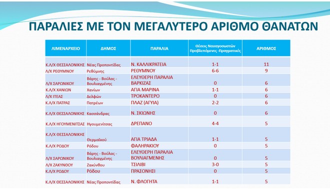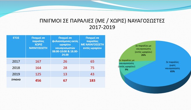 “Οι παραλίες με ναυαγοσώστη είναι πολύ ασφαλείς. Από την άλλη, ο αριθμός 456 είναι πολύ μεγάλο νούμερο. Όπως μεγάλο είναι και το 67 που βλέπετε στους εκτός ωραρίου θανάτους, Γι’ αυτό θα θέλαμε να επεκταθεί η κάλυψη και σε άλλες παραλίες αλλά και να αυξηθεί το ωράριο”.